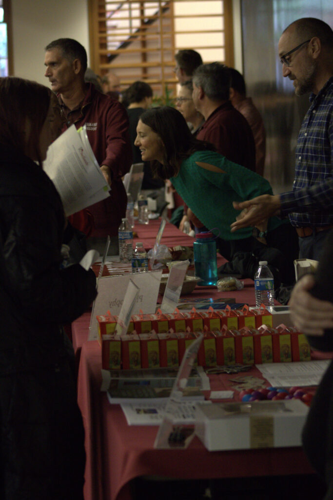 Inside Armacost Library, faculty answer questions and give out goods to prospective families. The purpose of this event was to gain insight about the different majors and departments at the University of Redlands. Credit: Jackson Decanio